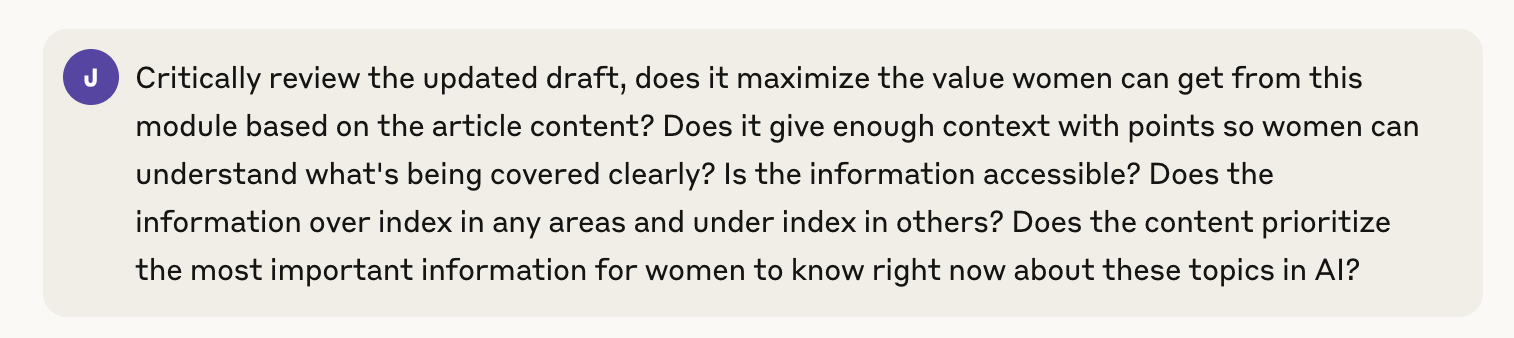 I partnered with the team at the AI-Powered Women Conference to create a primer course for attendees so we get everyone attending a baseline of AI knowledge, as well as some differentiator tips and tricks. It was a great opportunity to see just how far we’ve come with AI augmenting content creation. I shelled out the $20 for a Claude pro plan and went down the rabbit hole.