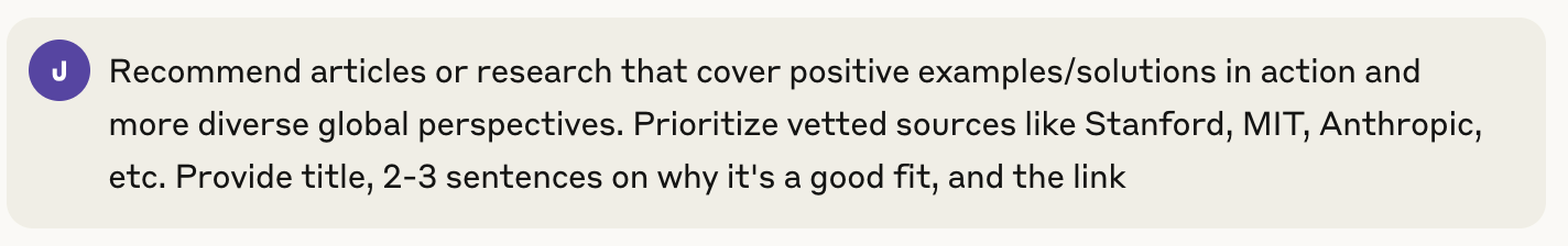 I had it analyze the original articles before giving it a search request because GPTs can get a little lost when given multiple commands at once. If you give it steps, guiding through a process, there’s a higher likelihood of getting quality results. Plus, it had the added benefit of highlighting some themes and insights from the articles I’d selected that I could compare against.